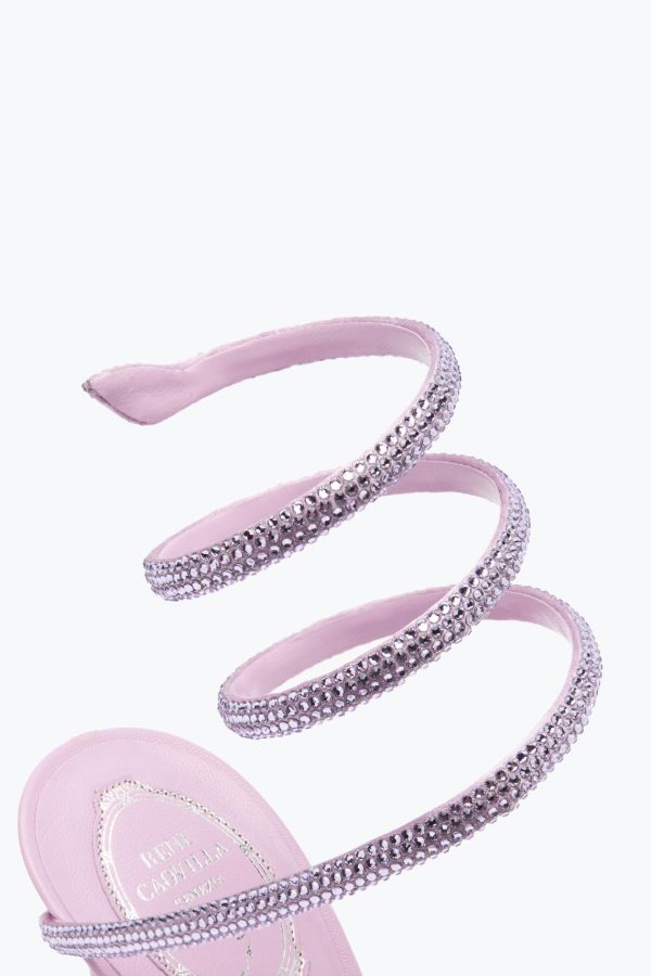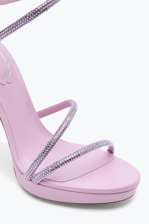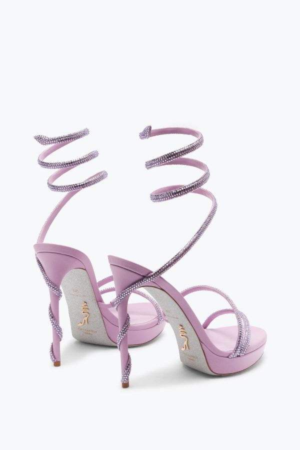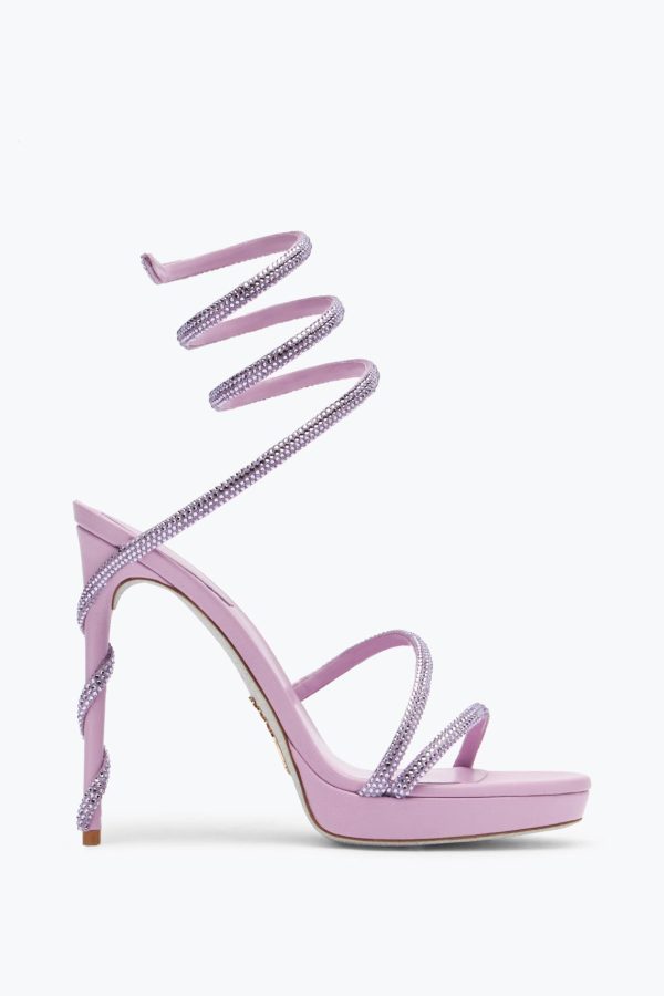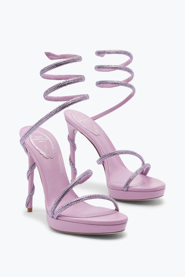The Margot sandal in the orignal mauve shade ensures a touch of refined elegance to summer outfits. The comfy platform, high stiletto heel and crystal serpent make this style a perfect ally for the most glamorous nights.